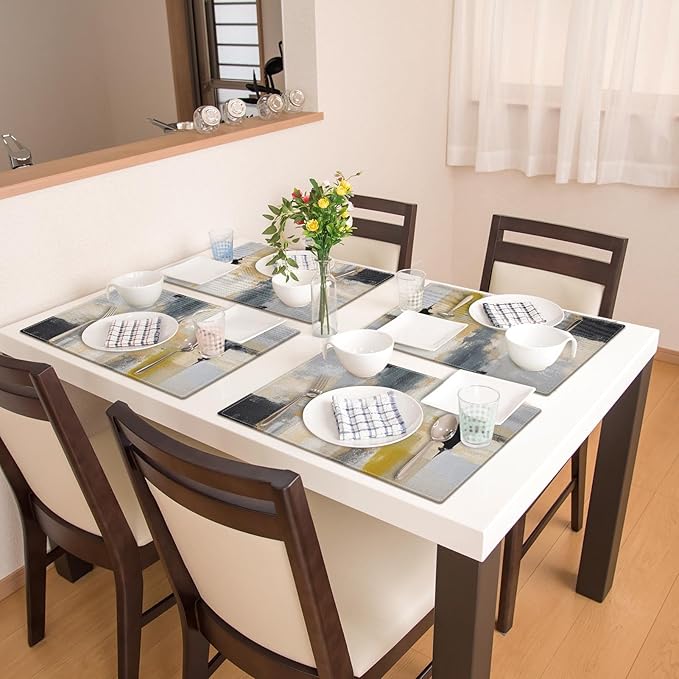 Emvency Farmhouse Placemats Set of 4, Modern Grey and Gold Art Painting 12x18 Inch Abstract Beige Table Mats for Outdoor Home Party Kitchen Dining Decoration