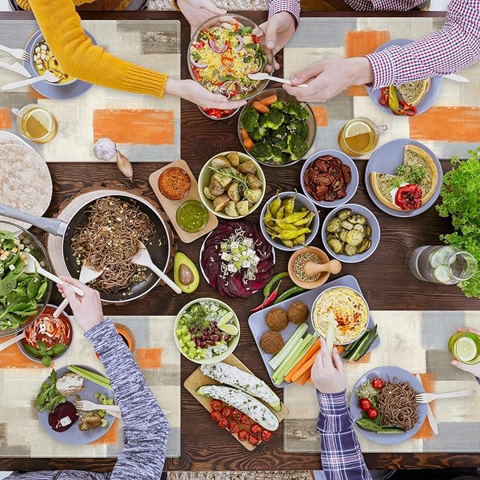 Emvency Farmhouse Placemats Set of 4, Vintage Orange and Grey Art Painting 12x18 Inch Abstract BeigeTable Mats for Outdoor Home Party Kitchen Dining Decoration