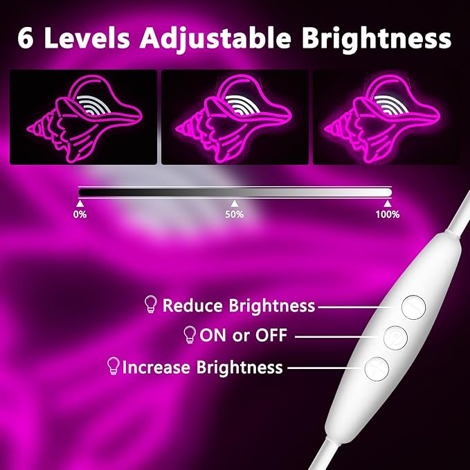 - Adjustable Brightness: The neon light has six levels of brightness. Just press the “+” and “-” buttons to adjust the brightness (10% to 100%) to get the optimal lighting you need.
