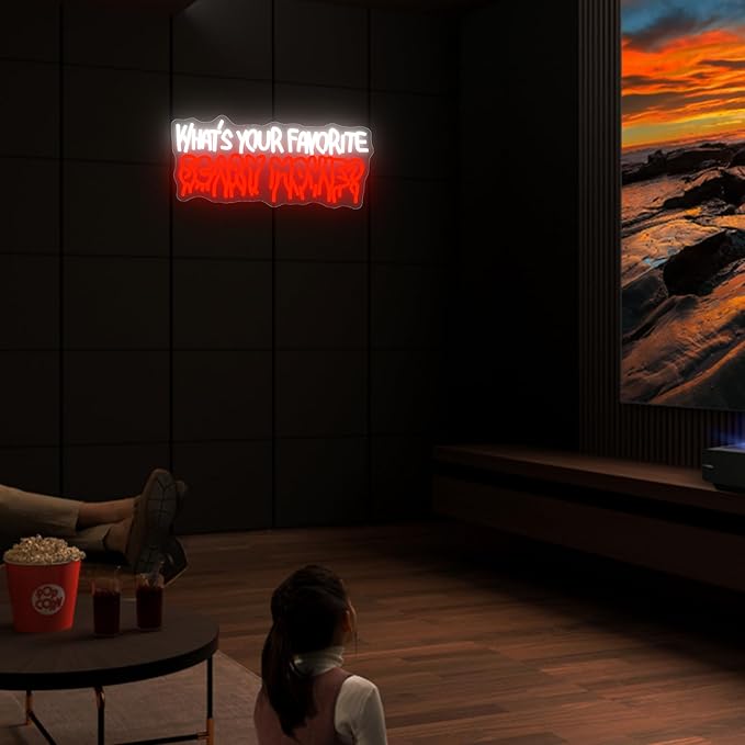 What's Your Favorate Scary Movie Neon Sign, Horror Movies Neon Signs For Wall Decor, Gothic Led Light Up Signs for Room Bar Man Cave Movie Night Party Halloween Decorations Gifts