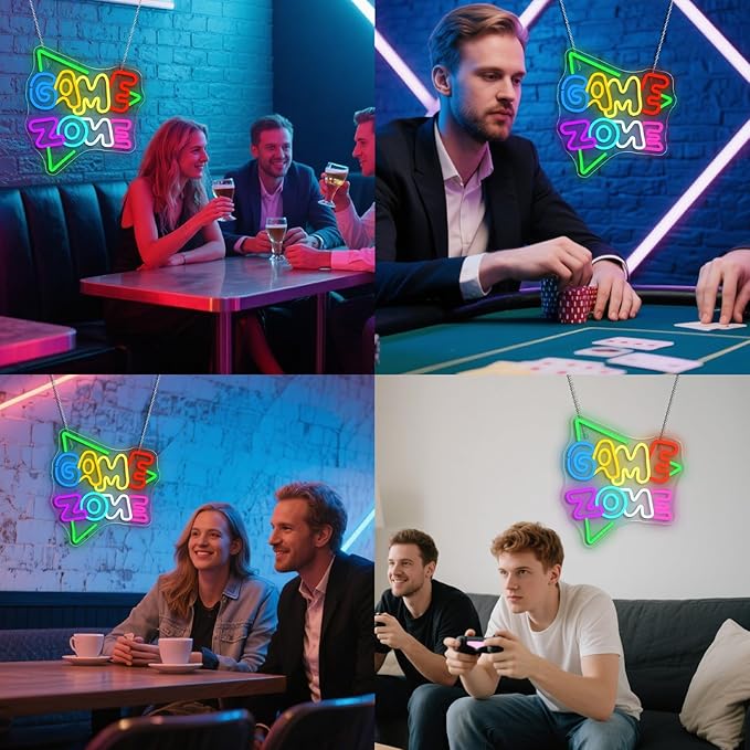 - UNIQUE DESIGN: Game zone neon sign energizes your gaming room with a bold design. Neon signs for wall decor are made for eSports lairs, play rooms or teen parties. Let this LED sign decorate your space and make your walls bright and artistic.
