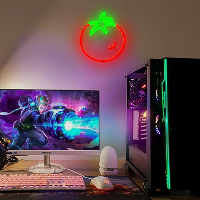 Tomato Neon Sign for Wall Decor,Cute Fruit LED Neon Light 9.4 * 10.2 inch Dimmable USB Kawaii Small Tomato Light Up Sign for Boys Girls Room Restaurant Birthday Party barn