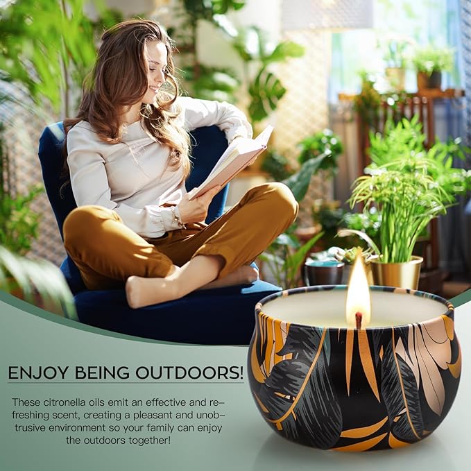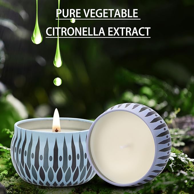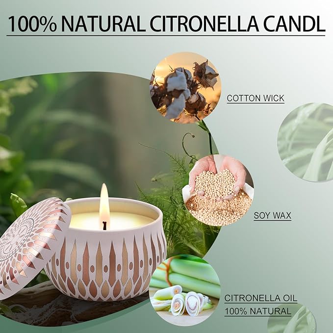 - 【Soy Wax Candles Clean Burning】These citronella candles outdoor made of natural soy wax , organic cotton core, burn evenly and fullyno unsightly black soot won't generate acrid smoke, harmless to human. These vegan candles deliver a refreshing fragrance that is entirely free from paraffin and residues.