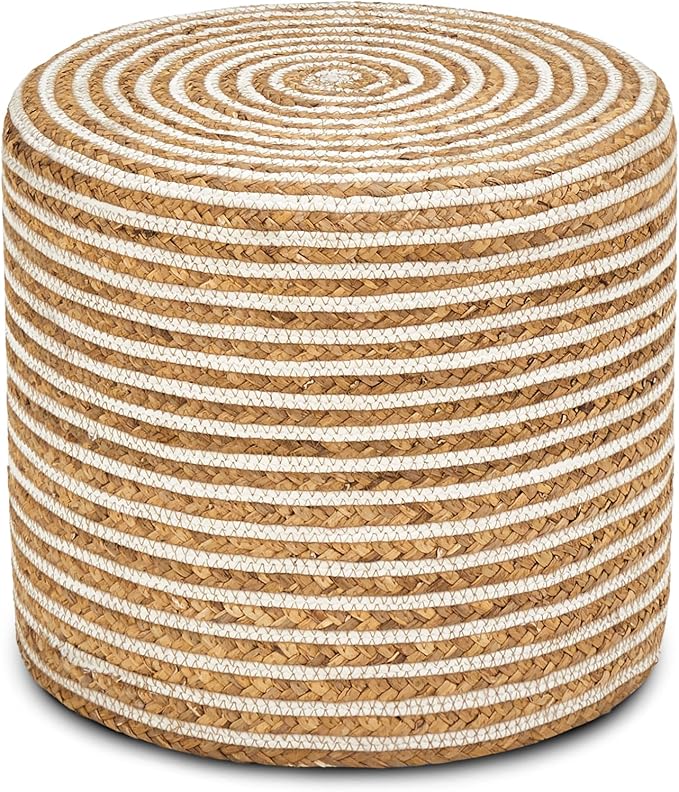 - 100% Handmade Cover: Pouf Ottoman is made of sustainable, and durable natural seaweed & corn husk braid.High-end sewing technology makes natural materials more tight and not easy to open