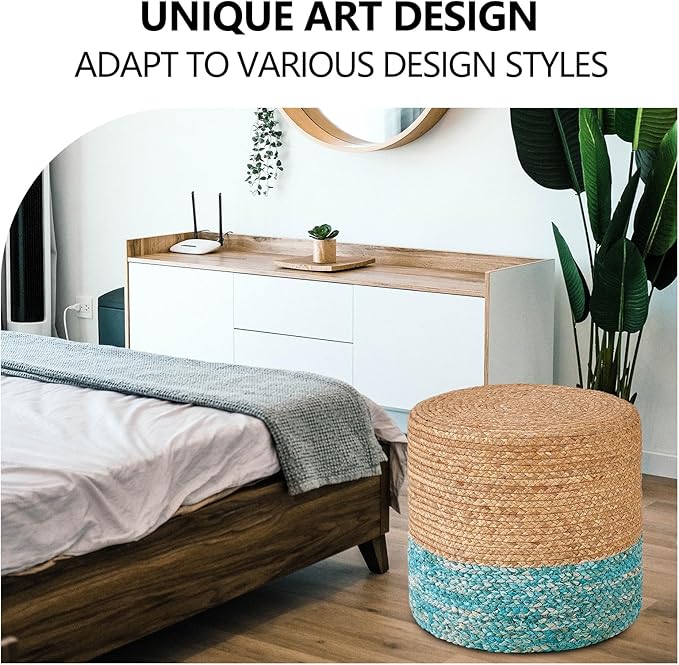 - 100% Handmade Cover: Pouf Ottoman is made of sustainable, and durable natural seaweed & corn husk braid.High-end sewing technology makes natural materials more tight and not easy to open
