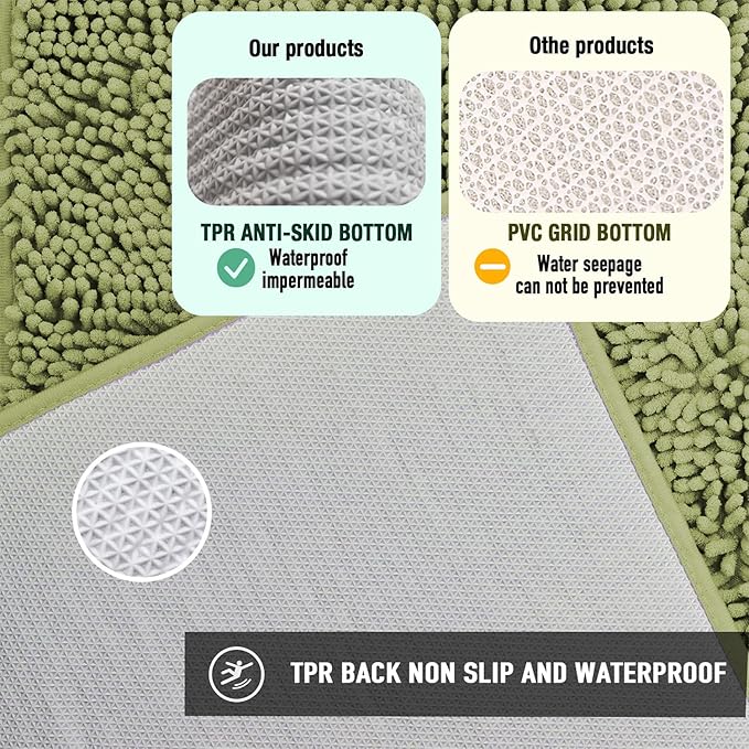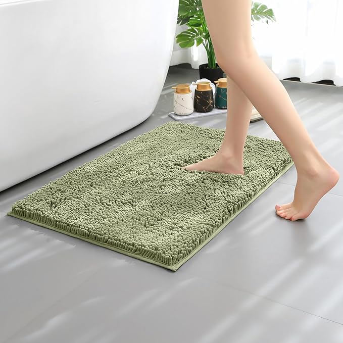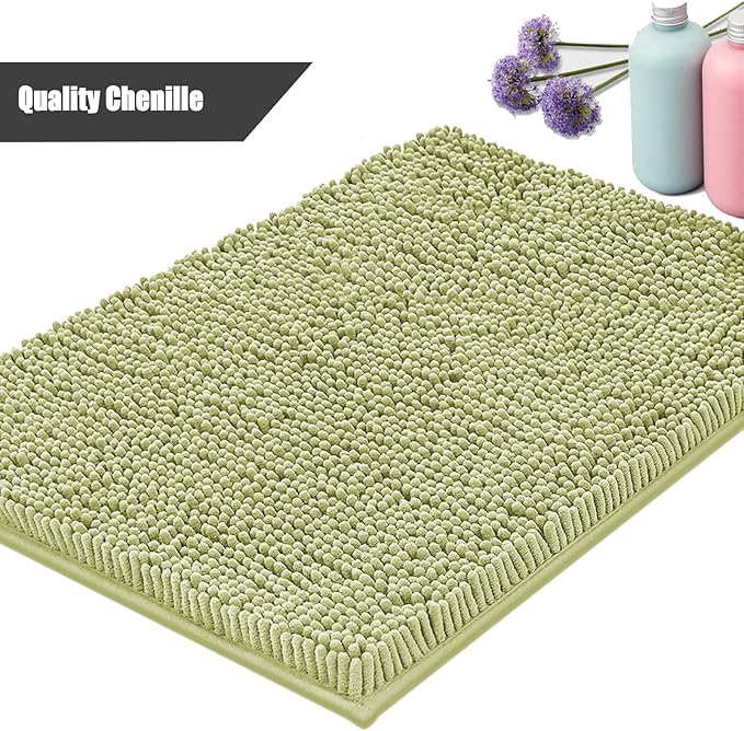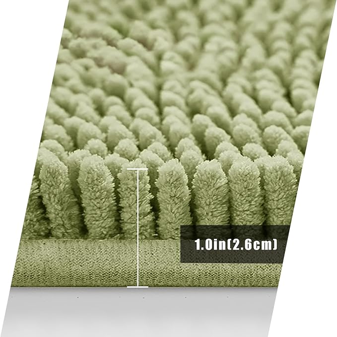 - SOFT CHENILLE: This bathroom rug is made of high-quality chenille.The chenille is viry soft and it's easy to clean. Chenille velvet length 1.1inch. It's the color of sage leaves. Colors may show color differences in different environments. The first picture has been color-calibrated with a Mac computer and is the closest to the original color.