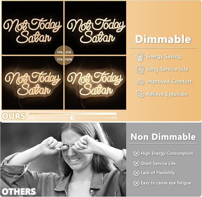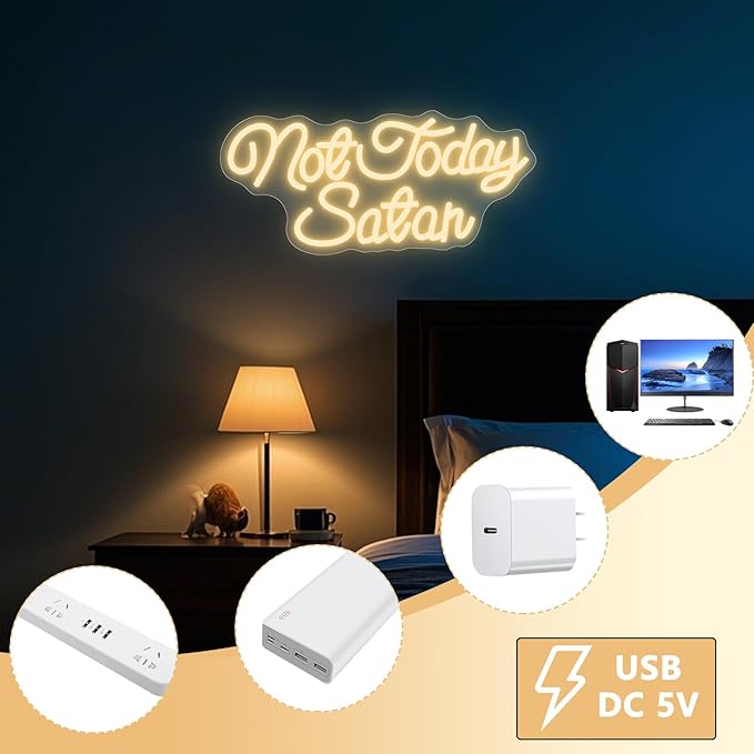 Not Today Satan Neon Sign, Funny Neon Signs for Wall Decor, Light Up Signs for Home Bar Man Cave Birthday Party Kids Room Gifts