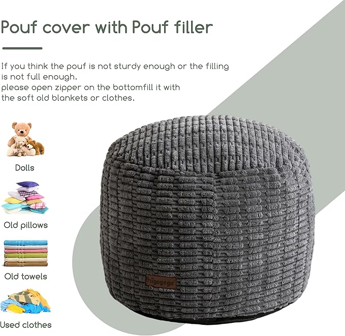 - Too Many Complaint on the Filler Too Soft: We develope the pouf ottoman filled with high-density foam, providing the perfect blend of comfort and support. The solid foam core ensures the ottoman retains its shape while offering a plush, comfortable surface for resting your feet or sitting. Additionally, the cover features a non-slip bottom, ensuring the ottoman stays securely in place during use.