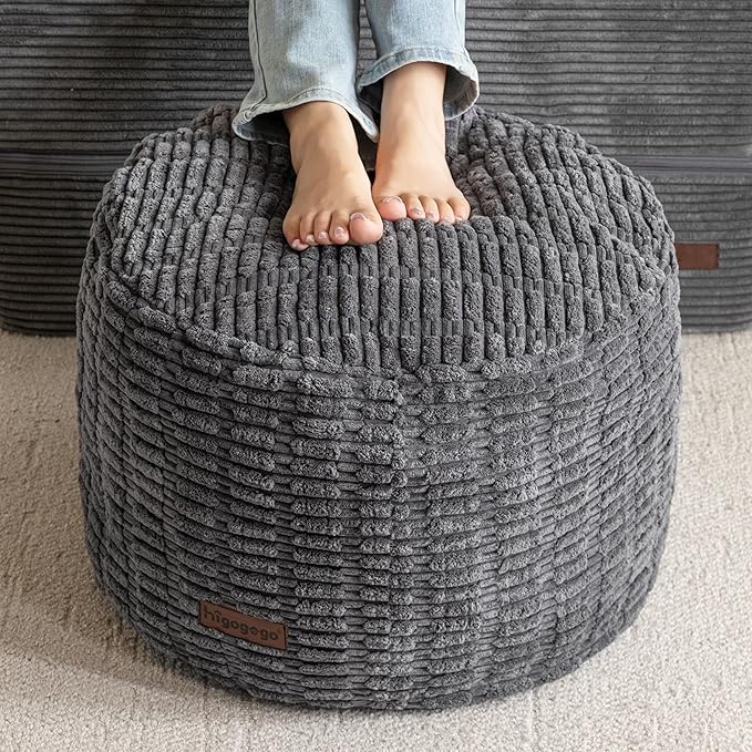 - Extremely Comfortable Pouf Ottoman Stuffed: This pouf ottoman cover adopts plush fiber with thick backing,fluffy and durable, holds its shape perfectly,gives a softest feeling for your feet with our fluffy ottoman foot rest.