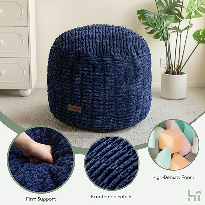 - Too Many Complaint on the Filler Too Soft: We develope the pouf ottoman filled with high-density foam, providing the perfect blend of comfort and support. The solid foam core ensures the ottoman retains its shape while offering a plush, comfortable surface for resting your feet or sitting. Additionally, the cover features a non-slip bottom, ensuring the ottoman stays securely in place during use.