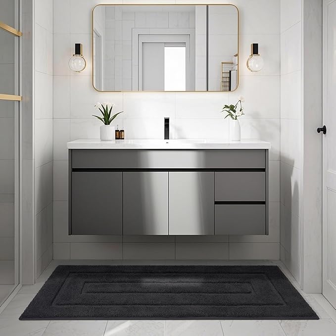 - Utra Soft and Versatile: The grey bathroom rug with high density microfiber provide a comfortable to your feet, 24x60 inch long runner suitable for bathroom kitchen bedroom laundry room use