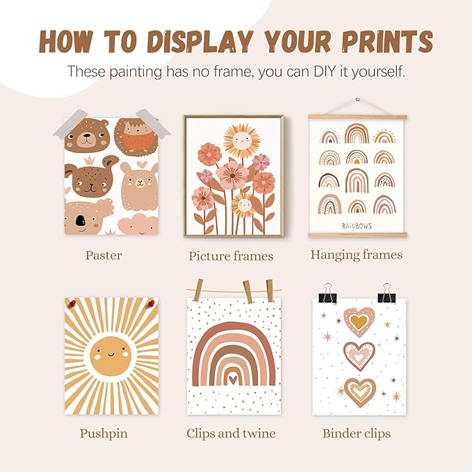 - ✔ This set of posters adopts kids’ watercolor wall art prints. On the basis of cuteness, it combines with bohemian style to make this set of posters more artistic. As the nursery wall decor , these posters make the room look softer and warmer.