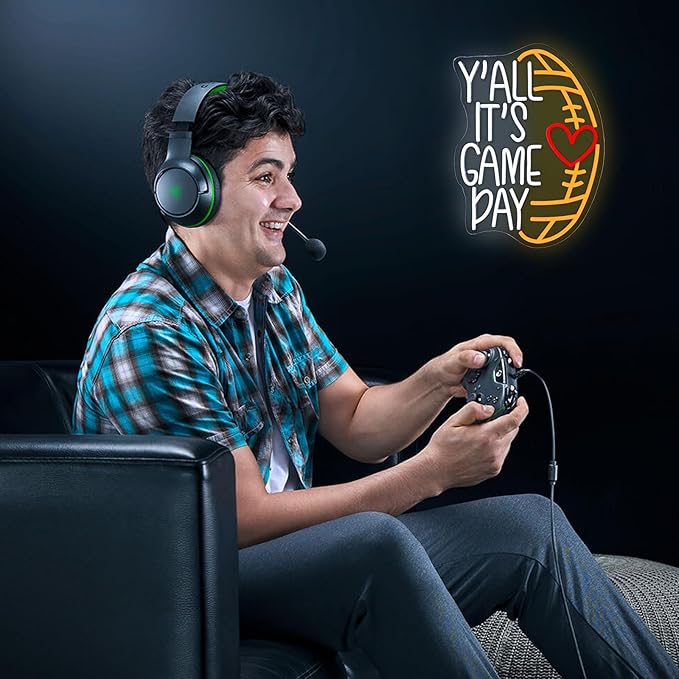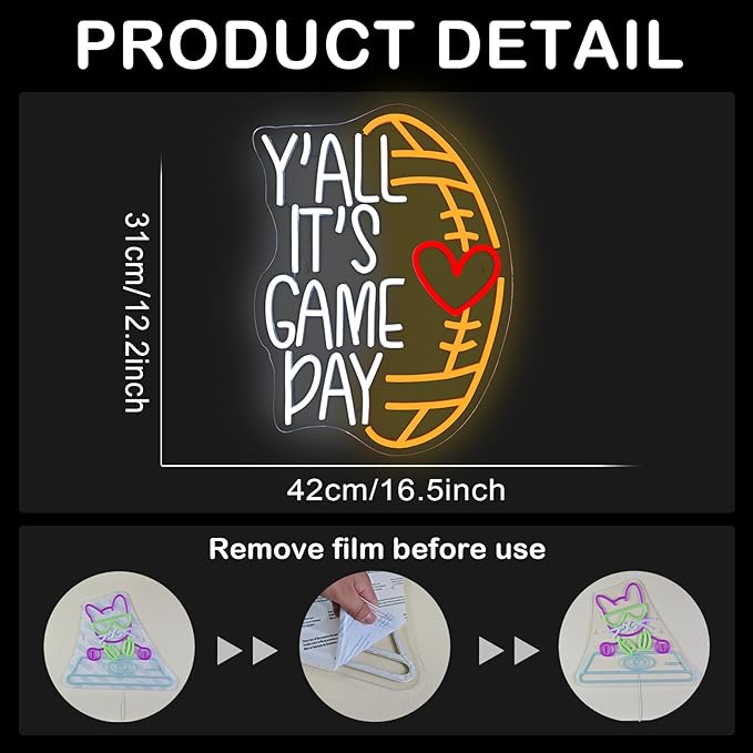 LED Neon Sign for Wall Decor, Y'ALL Its Game Day FootballNeon Light, USB Powered Dimmable, 5V/2A, 16.5"x12.2" for Home, Party, Gift, Office, Bedroom, Football Lover