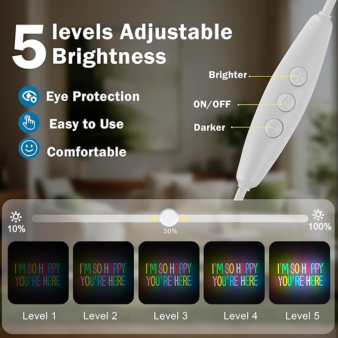 I'm So Happy You're Here Neon Sign for Wall Décor Dimmable LED Neon Light USB Powered Neon Art Signs Decor