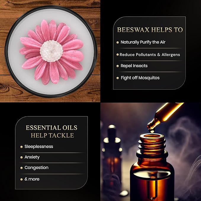 - AROMATHERAPY AND BEESWAX BENEFITS: Essential oil infusion creates a calming atmosphere while naturally purifying the air as the candle burns longer. Also helps to fight off mosquitos while helping tackle sleeplessness, anxiety, congestion, and more.