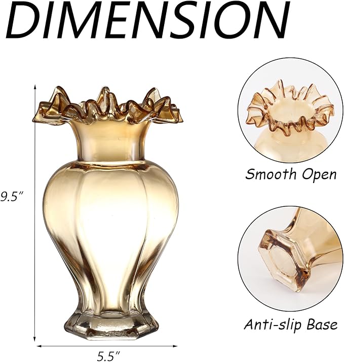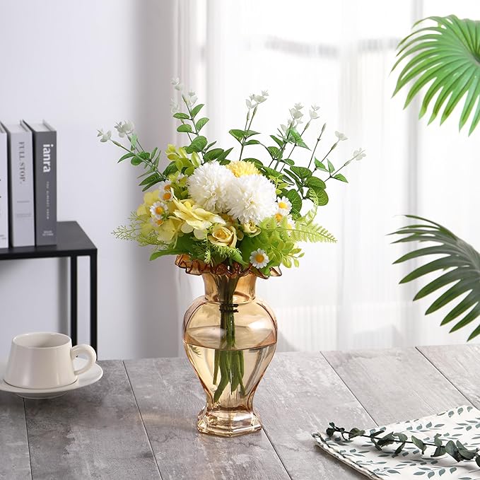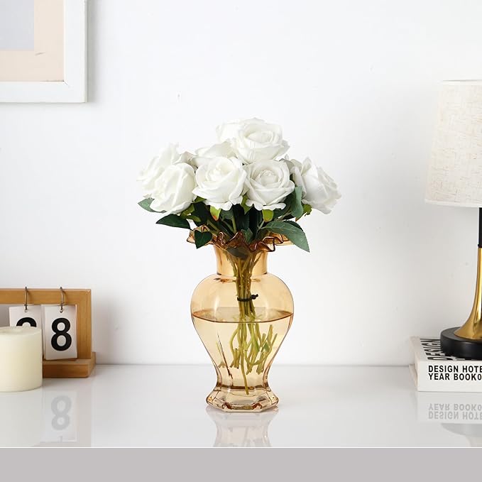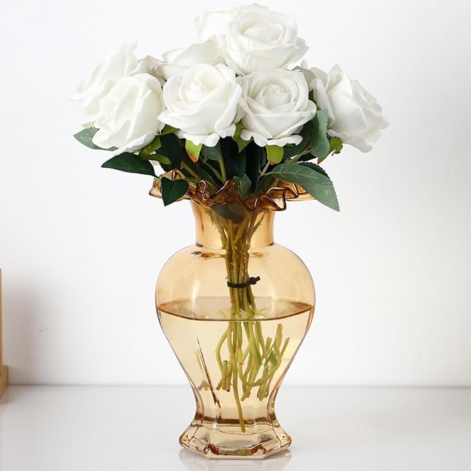 Large Glass Vase, Amber Vase for Flowers, Flower Vases for Bouquet, Glass Flower Vases for Living Room, Dining Table, Shelf, Wedding, Office, Coffee Table, 9.5 Inches