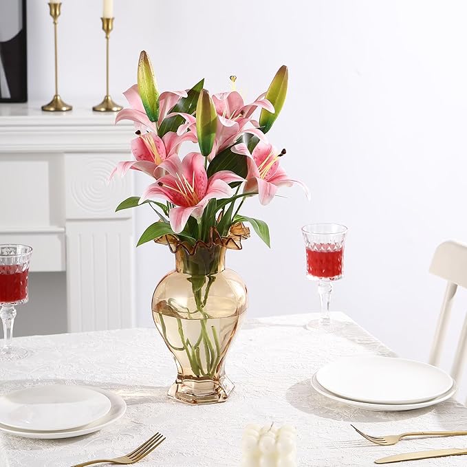 - Versatile for Any Occasion: With a wide opening and spacious body, this decorative clear glass vase pairs beautifully with tall flowers like roses or peonies, creating a stunning focal point for any room