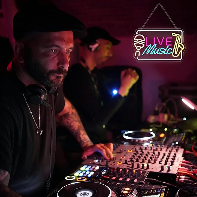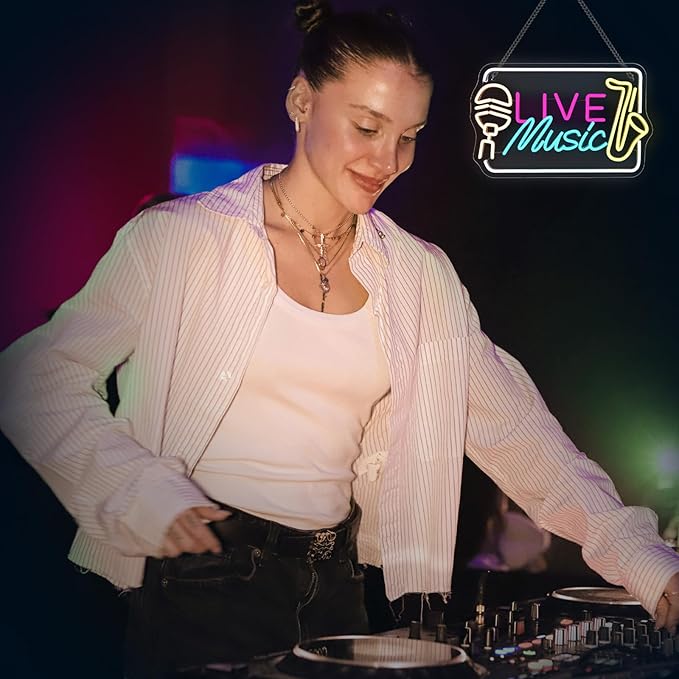 Live Music Neon Sign Bright LED Wall Decoration for Music Venues, Bars, Clubs or Homes, USB Power Adjustable Brightness, Classic Song Theme Decoration