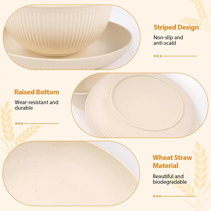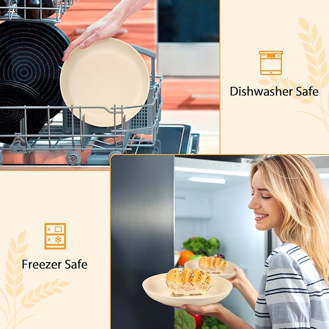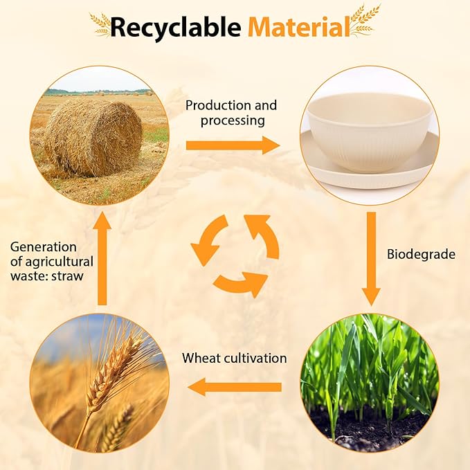 - Safe Material: Made from natural wheat straw, these dinnerware are 100% BPA-free and non toxic. They are biodegradable, reducing plastic waste and environmental pollution. A safe, sustainable choice for health-conscious families and eco-friendly living