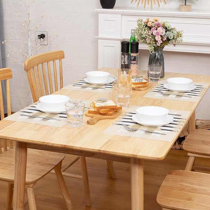 - Material: Placemats woven with high quality eco-friendly PVC materials. Effective heat resistance of approximately 176°F (80°C), protecting your table from stains, scratches from tableware.