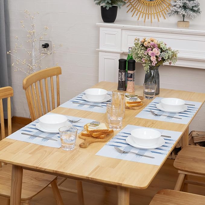 Winknowl Placemats Set of 4, Heat Resistant Stain Resistant Woven Vinyl Insulation Place mats, Durable Washable Elegant Table Mats for Kitchen Dining Table Decor (Geometric Blue)