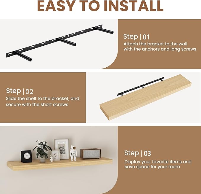 - 【EASY TO ASSEMBLE】Our upgraded hidden mounting bracket was designed to line up with 16" framing studs on center and sit Flush-To-Wall. Instructions, magnetic level, drywall anchors, and screws included. This is great because you can easily mount these rustic shelves Gap-Free to any surface in less than 10 minutes!