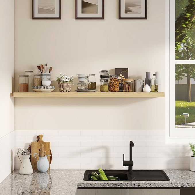 Fun Memories Rustic Real Wood Floating Shelves, 8 Inch Deep Floating Shelf Wall Mounted, 48" W x 8" D Wall Shelves Storage Shelves for Living Room, Bedroom, Bathroom, Natural Finish, Set of 1