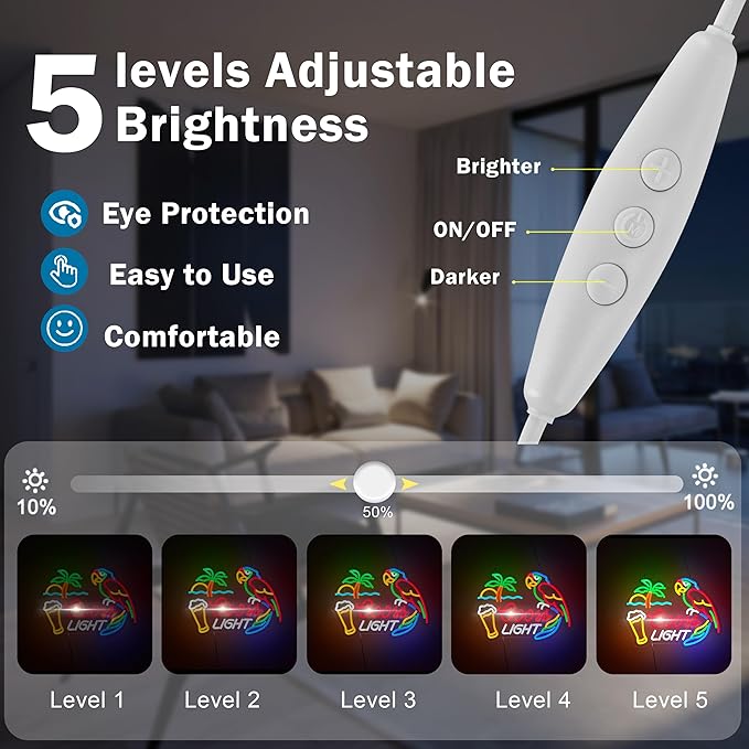 - The neon sign has dimmer on the switch , the brightness can be adjustabl