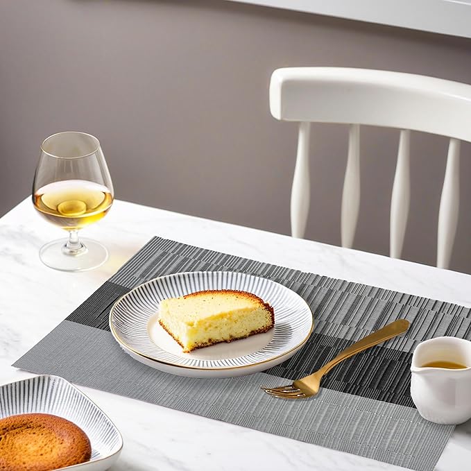 - ELEGANT DESIGN: Our double-sided placemats feature a luxurious vinyl weave texture, precision cuts and heat-trimmed edges for a sophisticated and practical solution. With a non-slip, colorfast, easy-to-clean surface, these placemats will enhance your dining experience.
