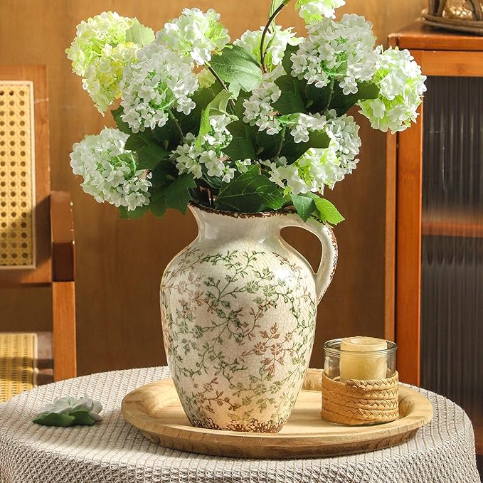 Enra Vintage vase,Ceramic Chinoiserie Floral Vase,Green and Beige Decorative Flower vase,Large Rustic Vases for Home Decors, Living Room, Bookshelf, Office,9.7 inch