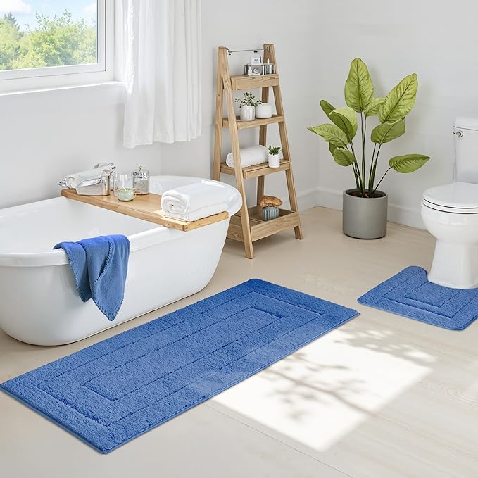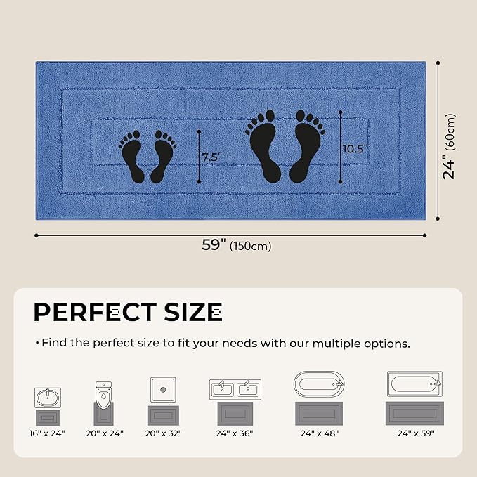 GRANNY SAYS Blue Bathroom Rugs Non Slip, 24" x 59", Large Bathroom Rugs Washable, Bath Rugs for Bath, Absorbent Bath Mats for Floor, Absorbent Shower Rug, Microfiber Bath Mat for Tub