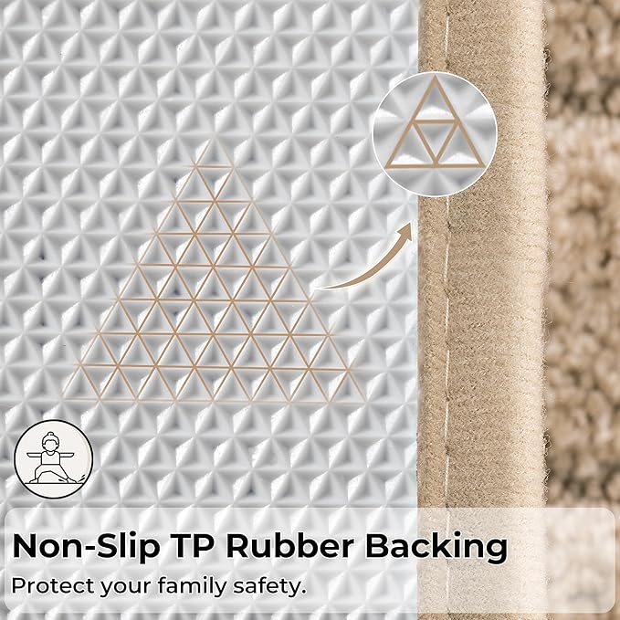 - Non-Slip TPR Backing: The bath mat is made with a premium, skid-resistant thermoplastic rubber backing for added security and durability. Keep the bottom of the bath rug dry, as water under the bath rug can make it slip.