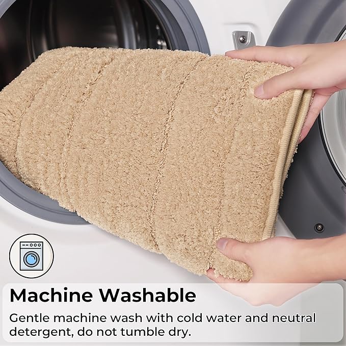 - Machine Washable: Machine wash the bathroom floor mat with cold water and mild detergent. Make sure the dryer is on low heat setting when tumble dry and keep away from chlorine and bleach. After professional testing, the color will remain vibrant after many washes.