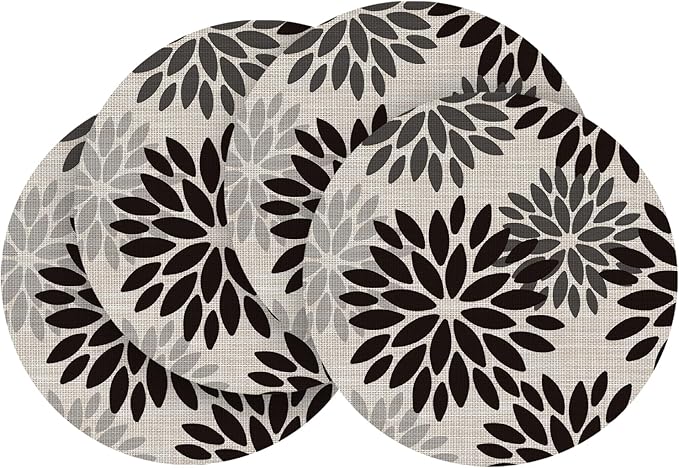 Artoid Mode Black Dahlia Plastic Round Placemats Set of 4, 14 Inch Seasonal Wipeable Woven Vinyl Table Mats for Farmhouse Party Kitchen Dining Decor