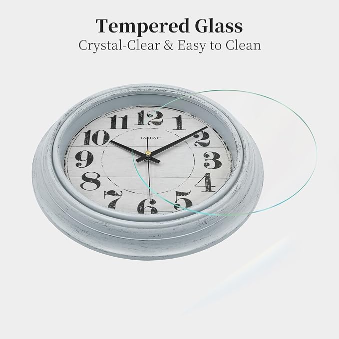 - [ Retro Blue Frame ]: This wall clock is framed with a thickness of 1.57 inch/ 4.5cm, durable and steady. Rustic blue classic frame with beautiful rubbed texture.