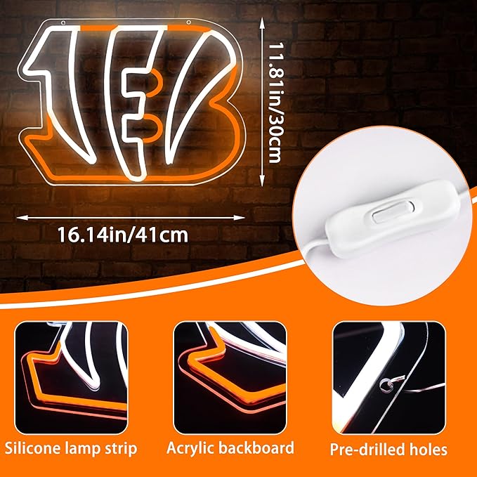 - Ideal Gift for Football Fans : If you are looking for a distinctive gift for your football fan friends, that LED Bengal football neon lights will definitely surprise you. You can enjoy precious moments of baseball with family and friends. And the football bengal neon lights that glow in the dark will amplifies your experience of watching the game,bringing you a different experience
