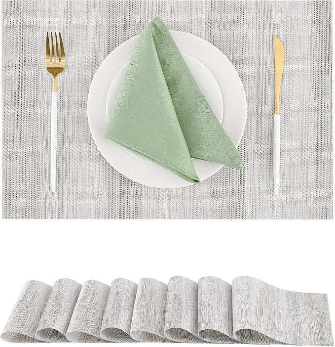 - Elegant and Practical Design: With a luxurious vinyl woven texture, precision cutting, and heat-trimmed edges, our double-sided placemats offer a sophisticated and practical solution. They provide a non-slip surface, resist fading, and are easy to clean, elevating your dining experience
