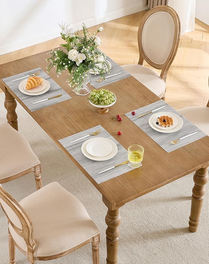 - Elegant and Practical Design: With a luxurious vinyl woven texture, precision cutting, and heat-trimmed edges, our double-sided placemats offer a sophisticated and practical solution. They provide a non-slip surface, resist fading, and are easy to clean, elevating your dining experience