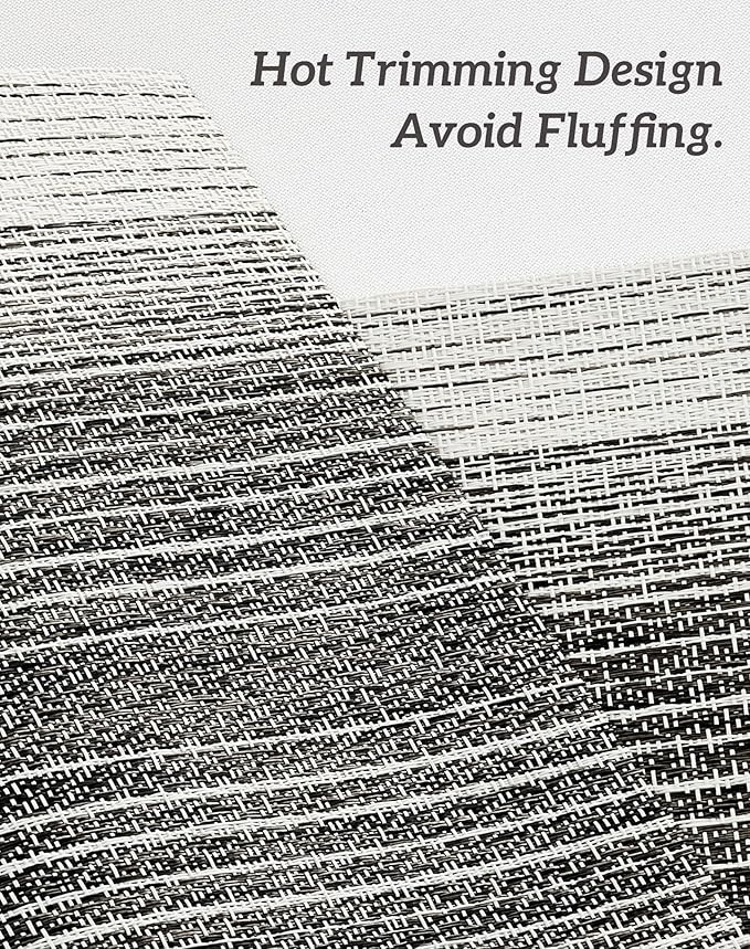 Leetaltree Black with White Woven Placemats Set of 6 - Heat Resistant Non-Slip Place mats for Dining Table, Washable Durable PVC Vinyl Woven Table Mats(Black with White, 6)