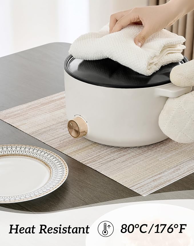 - Protects Your Table: Keep your table safe from scratches and spills with our heat-resistant placemats. They can withstand temperatures up to 176℉(80℃) and help keep food warm. Add style to your dining setting while ensuring table protection