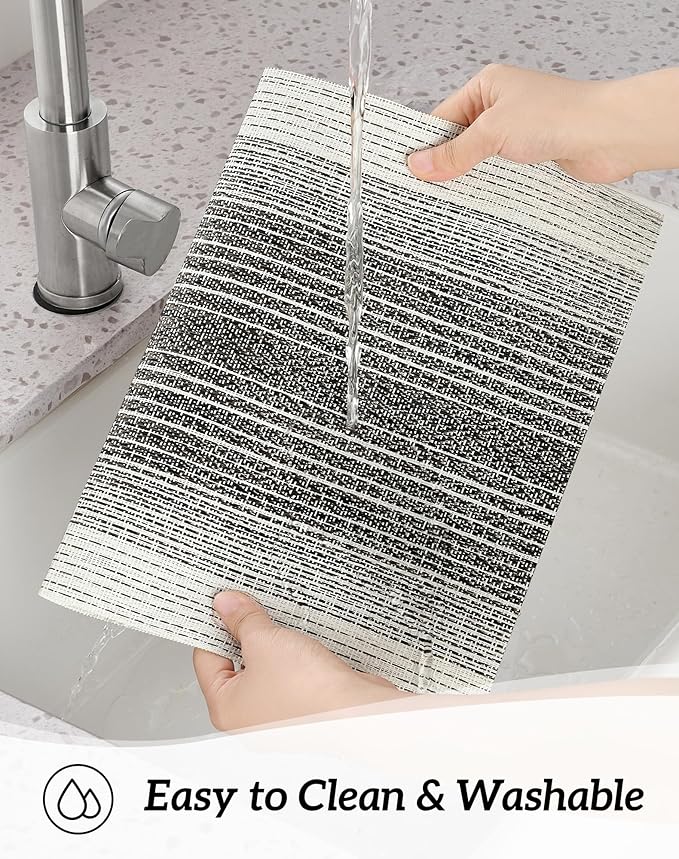 - Elegant and Practical Design: With a luxurious vinyl woven texture, precision cutting, and heat-trimmed edges, our double-sided placemats offer a sophisticated and practical solution. They provide a non-slip surface, resist fading, and are easy to clean, elevating your dining experience
