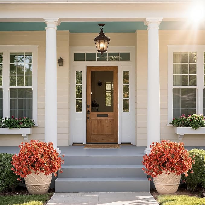 - 💐【Outdoor Artificial Plants】💐These aesthetically pleasing outdoor artificial plants are suitable for various areas of your home, including your porch, walkway, front yard, garden, living room, kitchen, bedroom, balcony, and more, adding a touch of natural beauty to your surroundings. Available in a variety of vibrant colors, these silk flowers require no watering and withstand harsh weather conditions without wilting.