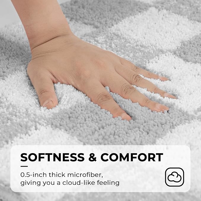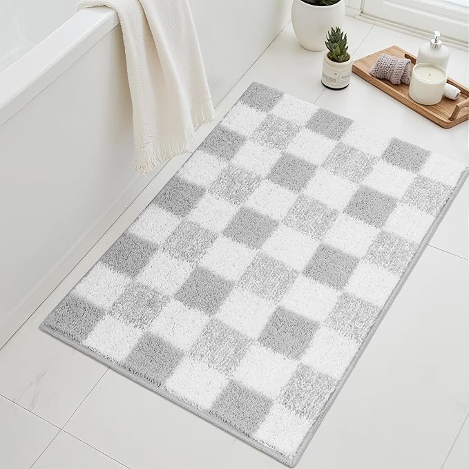 GRANNY SAYS Checkered Grey Bathroom Rugs, 36" x 24", Non-Slip Bath Mats for Bathroom, Plush Shag Absorbent Microfiber Ultra Soft Bath Mat, Cute Washable Rug for Tub, Shower, Bedroom