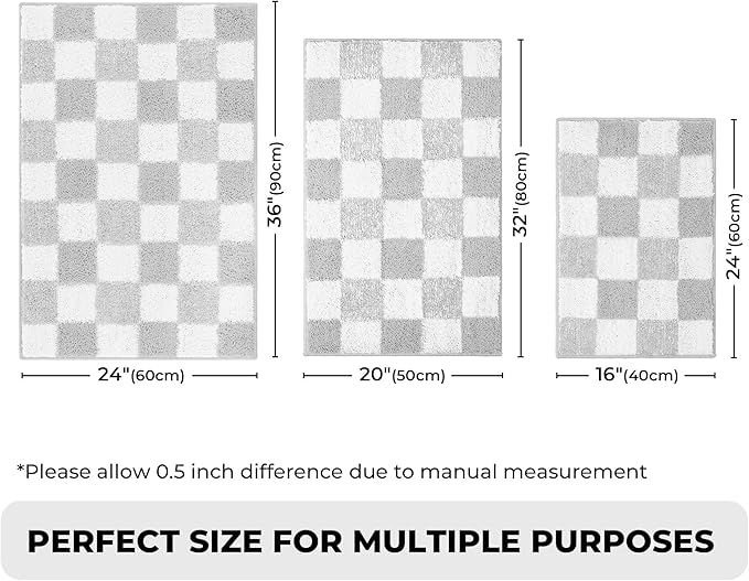 - UNIQUE DESIGN: Our bathroom rugs rock a classic checkerboard pattern, perfect for jazzing up your tub, shower, sink, bedroom, or even the kids' rooms!