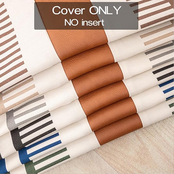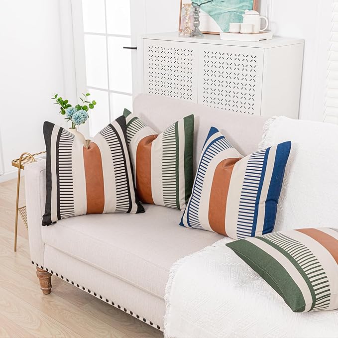 - Timeless Trendy Design - Double-sided pattern design.The timeless stripe pattern and chic faux leather accent combine a rural warmth and modern style, these rustic farmhouse pillow covers add a touch of vintage and artistic flair to your living space.