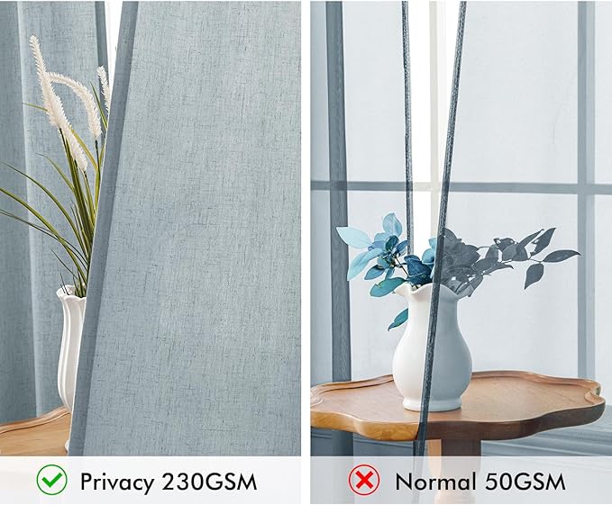 - PRIVACY CURTAINS: Our thick sheer curtains are perfect for filtering light. These weave blend linen curtains let some diffused light in but are not see-through, which provides a safe space and ensures your neighbors can't see what's happening inside