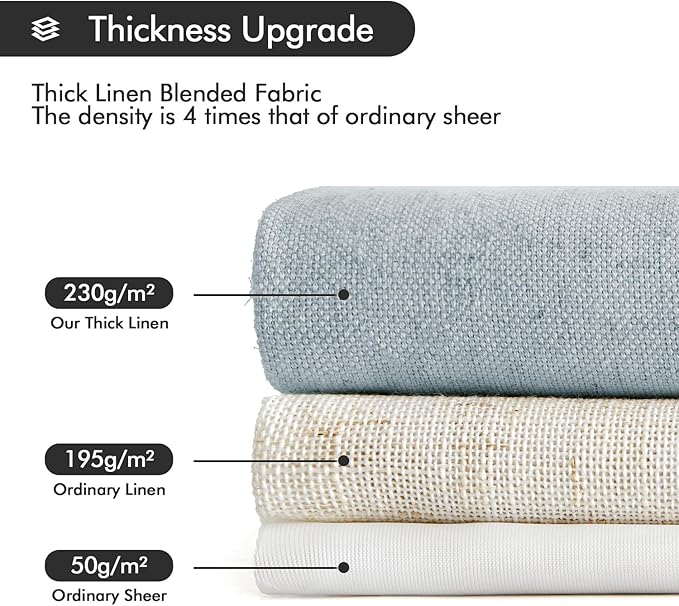 - PRIVACY CURTAINS: Our thick sheer curtains are perfect for filtering light. These weave blend linen curtains let some diffused light in but are not see-through, which provides a safe space and ensures your neighbors can't see what's happening inside