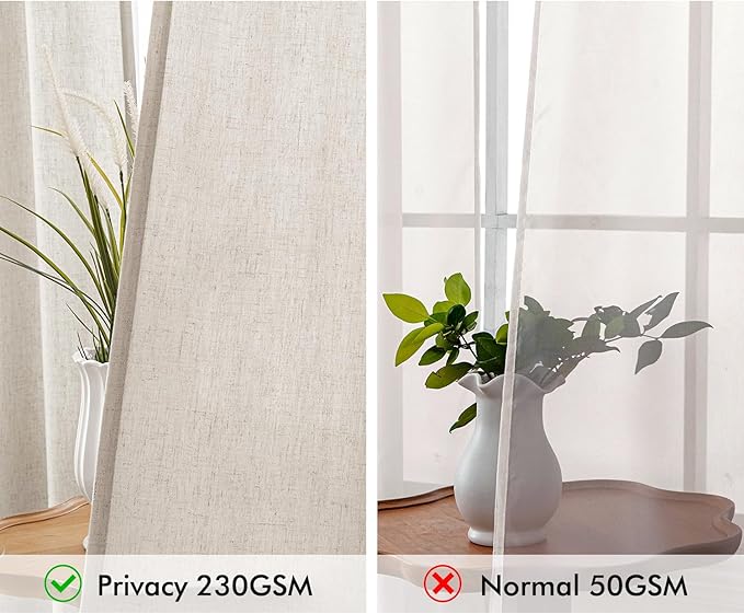 - PRIVACY CURTAINS: Our thick sheer curtains are perfect for filtering light. These weave blend linen curtains let some diffused light in but are not see-through, which provides a safe space and ensures your neighbors can't see what's happening inside