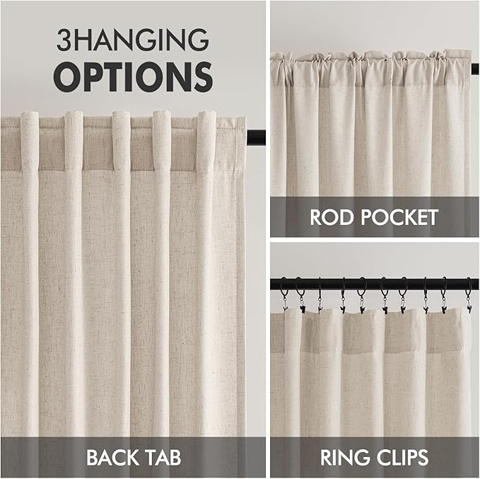 - STYLISH HOME DECOR: Soft touch surface with aesthetic style linen look fabric, these curtains can create a neutral style, and return to the classic style. Suitable for bedroom, living room, dining room, kids room, nursery, office, hotel, etc