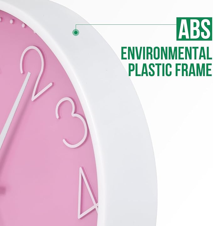 Wall Clock Non-Ticking Silent Modern Simple Style Round Decor Clock Stereoscopic Dial Quartz Wall Clocks for Home/Office/School/Living Room/Bedroom/Kitchen (Pink, 8inch)